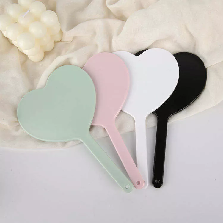 Deze schattige hartvormige draagbare make-upspiegel heeft een high-definition, vervormingsvrij glazen oppervlak voor nauwkeurig aanbrengen van make-up. Het lichtgewicht plastic handvat met ophanggat zorgt voor gemakkelijke draagbaarheid en opslag. Het is verkrijgbaar in meerdere kleuren en ondersteunt het afdrukken van aangepaste logo's, ideaal voor private label-, cadeau- of salongebruik.